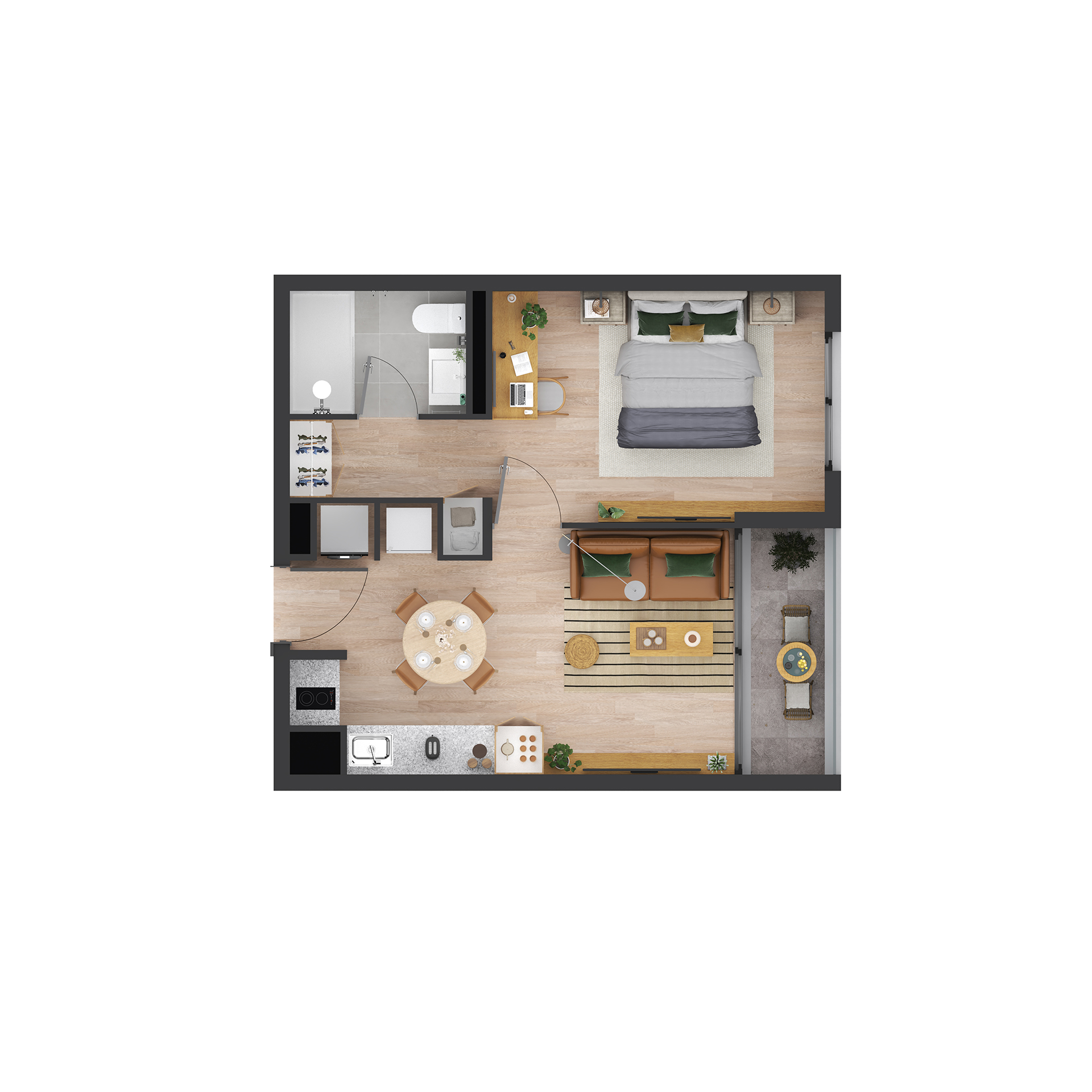 Nuestros departamentos de 1 dormitorio, te ofrecen un espacio moderno, funcional y acogedor, ideal para quienes buscan un nuevo estilo sin renunciar al confort.